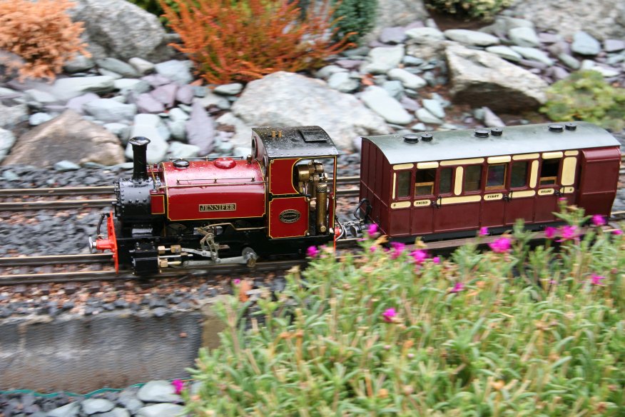 Running through a heavy thunderstorm, on Cliff Thomas's 45mm gauge logging line. This is the first steam locomotive to run on this normally electrically powered line.